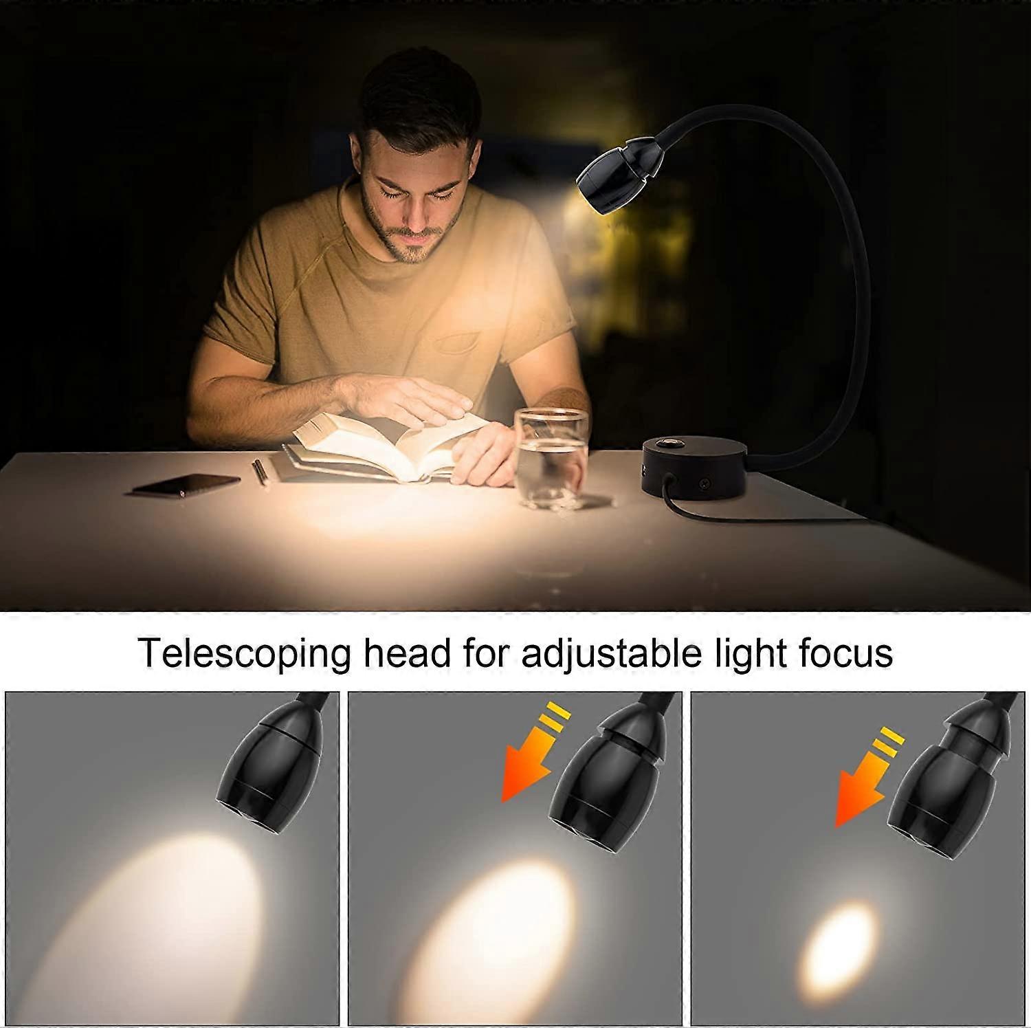 Wall Bedside Reading Light, LED Reading Light 38CM Gooseneck Adjustable Focused Light, 360 Flexible Rotation, 3W 3000K Warm White Reading Lamp with Sw