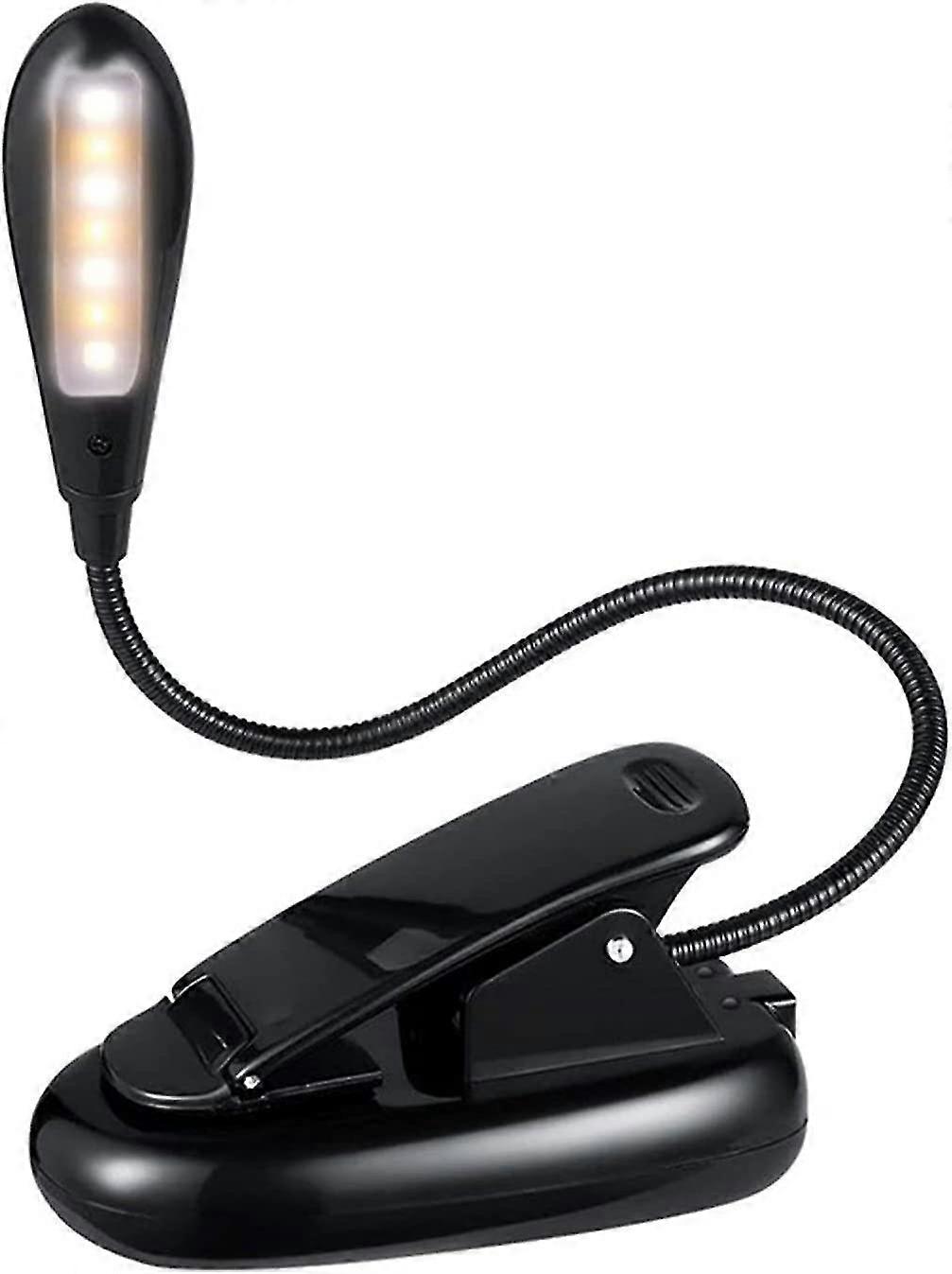 Reading Light With Clip Eye Care Desk Lamp Flexible Bedside Lamp Portable Battery/usb Rechargeable (black) (1pcs)