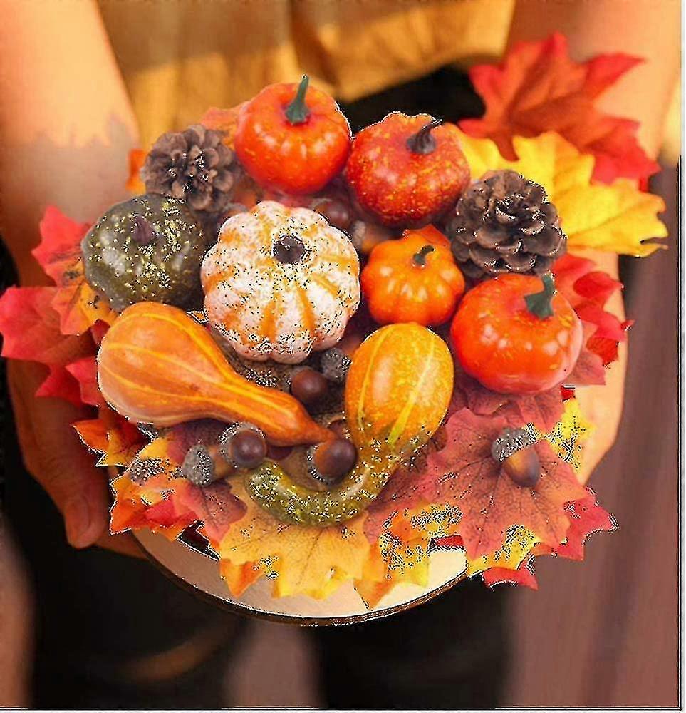 Starlight-artificial Pumpkins For Decoration, Harvest Thanksgiving Decoration Mini Artificial Pumpkins And Gourds Maple Leaves Pumpkin