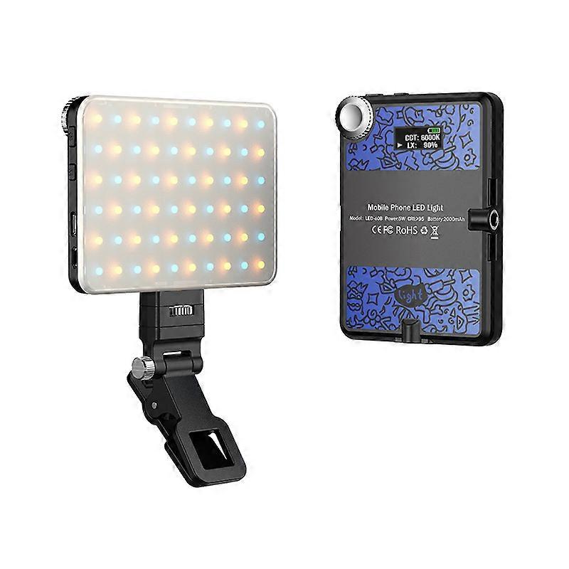 LED video light, 60 LED beads, with mobile phone clip, 2500K-9000 K color temperature, 1/4 inch screw hole, large capacity battery, for mobile phones