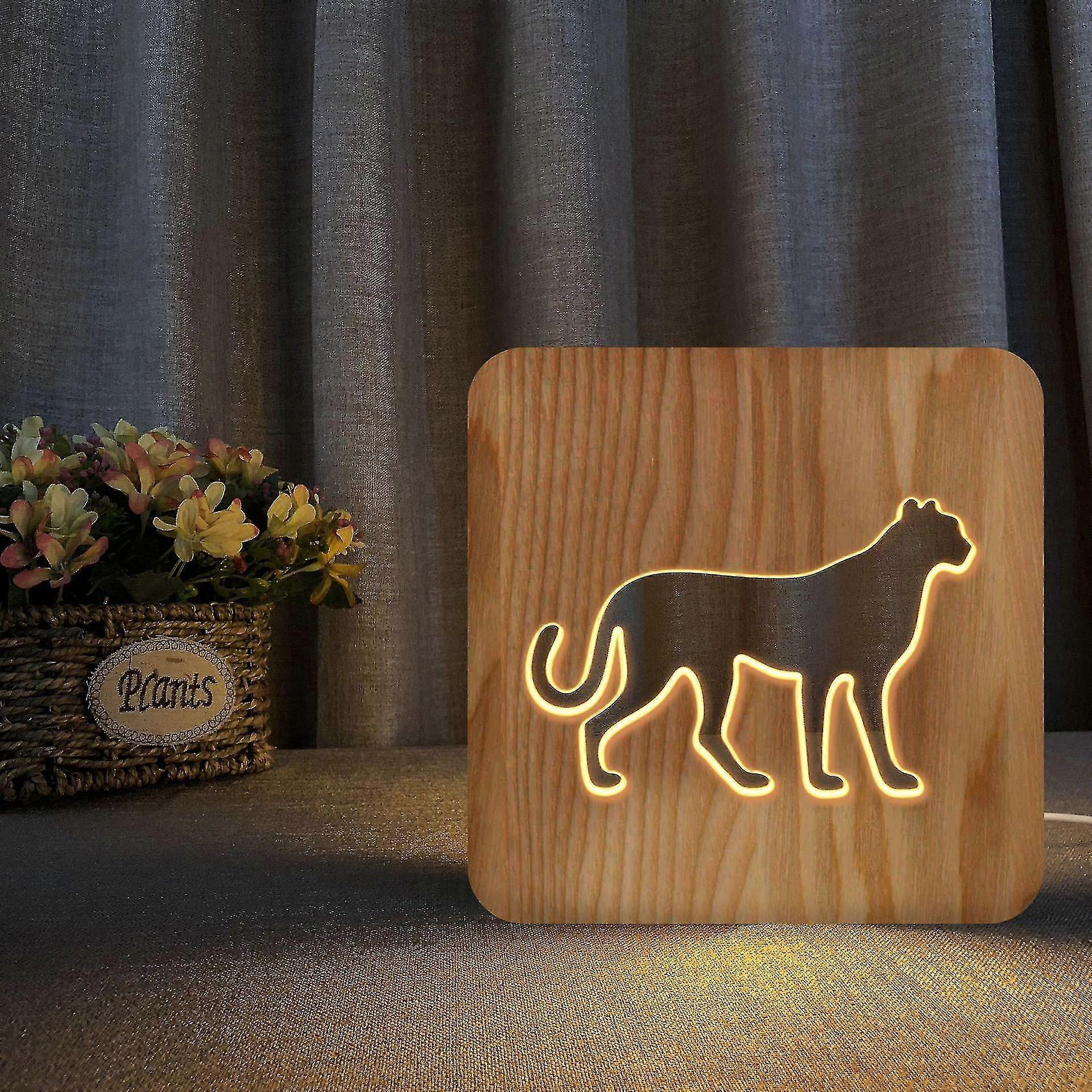 Light Bulb Night Light For Leopard Wooden 3d Lamp Creative Wooden Lights Simple