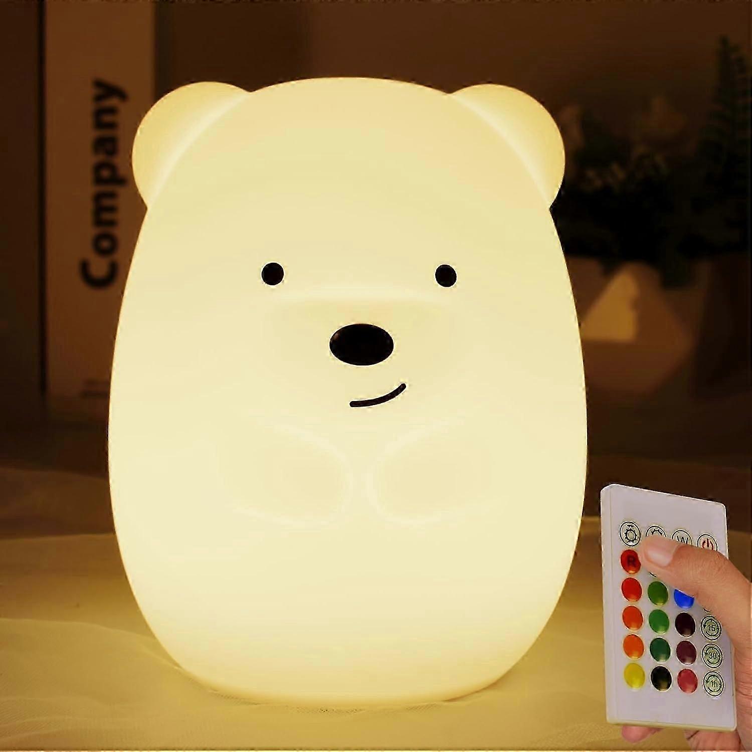 Safe and DurableThe BPA-free washable soft silicone night light is safe to operate, you can throw it around and squeeze it, it's still sturdy. Soothing LightThe LED animal night light provides a gentle calming glow on children's eyes, children can play with the night light in the bedroom and fall asleep under the soft light. 16 Colors + Remote Control & Touch ControlWith the remote control with timer switch, 16 different colors, you can easily dim and turn it off when needed. It also allows setting the timer so that it turns off when the baby is sleeping. USB RechargeableThe battery-powered baby night light can be charged by powering it with a micro USB socket plug. It can support 16 hours of lighting, and children can take the baby night light with them when traveling. Multi-PurposeThis soft children's night light is a great gift for birthdays, holidays, or baby showers. It is so cute that it is not only a gift, but also a complement to the room decoration. Although it is mainly for children, it is also suitable for adults who like cute animal night lights.