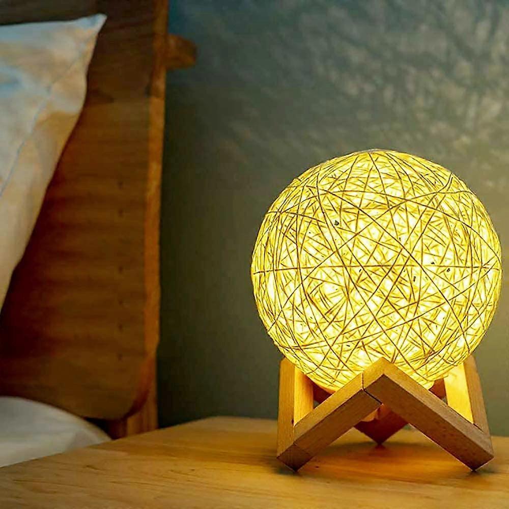 LED Night Light, Bedside Lamp, Rattan and Wood Bedroom Mood Lamp, USB Rechargeable