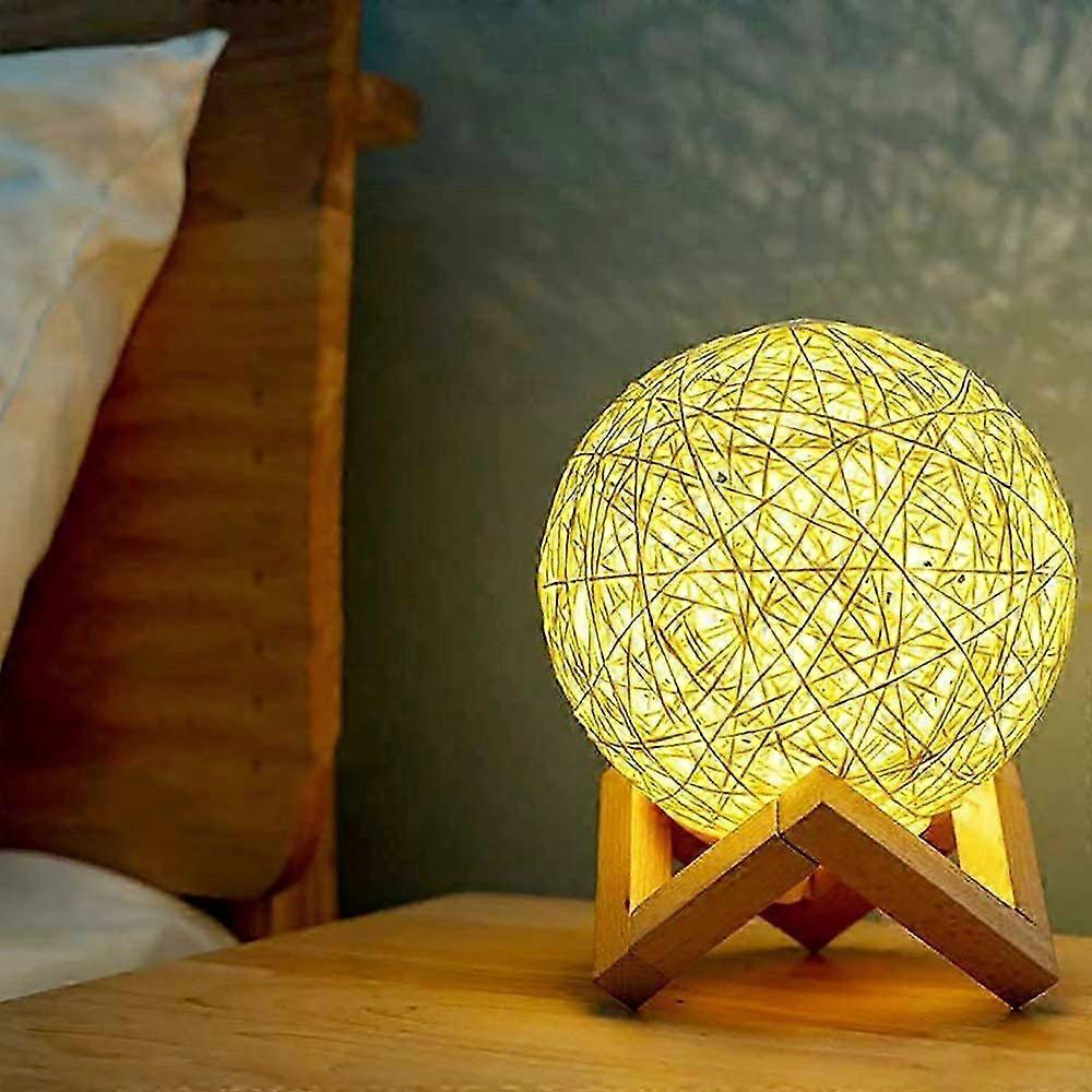 LED Night Light, Bedside Lamp, Rattan and Wood Bedroom Mood Lamp, USB Rechargeable