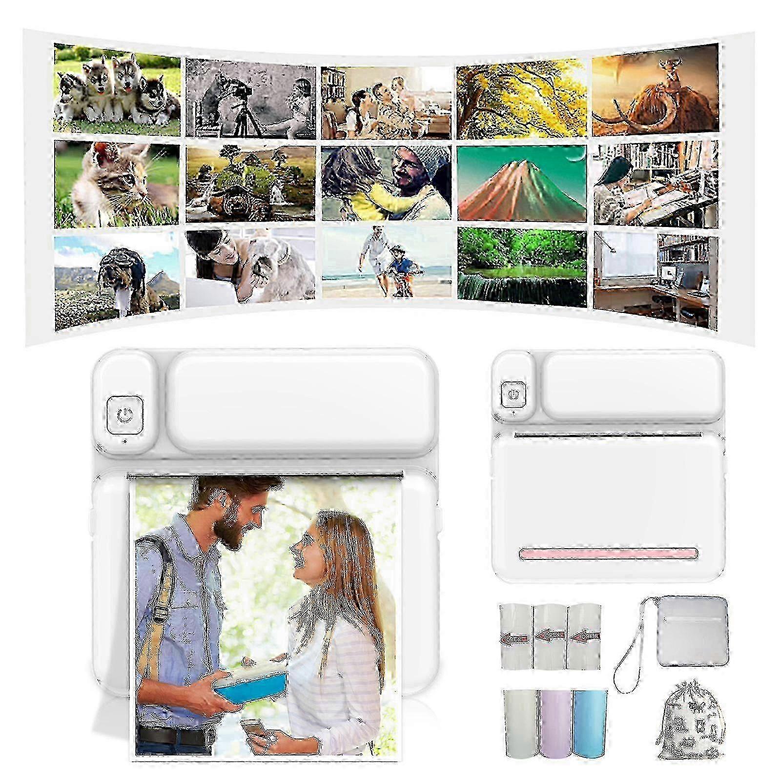 Thermal Portable Bluetooth Printers 57mm Mini Wireless POS Thermal Image Photo Printers For Android IOS Mobile PhoneFeatures:IMMORTALIZE YOUR MOST BEAUTIFUL MOMENTS -Experience the of remembering your memories by printing them straight from your phone!BE ORGANIZED - Stay in control at work and print your notes to organize your tasks or label anything you want.PORTABLE - Handy for traveling! Since the is battery powered, you don't need a power cord and can take with you anytime, anywhere.NO INK NEEDED - Print photos instantly anywhere. Due to heat technology, no ink is used and there are no unnecessary costs.CONNECT WITH BLUETOOTH - Connect any smartphone quickly and easily with the via Bluetooth within a few seconds.Useing thermal printing, which means it doesn't need any ink to print! all smartphones on the market! Computers can also be connected to print.Printing All You Like: Support multiple functions, it can print photos, labels,messages, lists, records,, web printing and so on. The APP offers a variety of fonts and themes to make your photos stylish.Product Print parameters: 200dpiPrinting : thermal inkless printingBattery capacity: 1200 7.4v lithium battery 2A chargingPrinting paper: 57x25mmConnection : Bluetooth wireless inkless printingPaper: About 15g or rollProduct size: 110x80x30mm, about 160APP: directly searches and downloads iPrint,Packet included: and3 rolls of colored paperand3 rolls of self-adhesive tapeandcloth bagandprotective cover Note: Due to the light and screen setting difference, the item's color may be slightly different from the pictures. Please allow slight dimension difference due to different manual measurement.