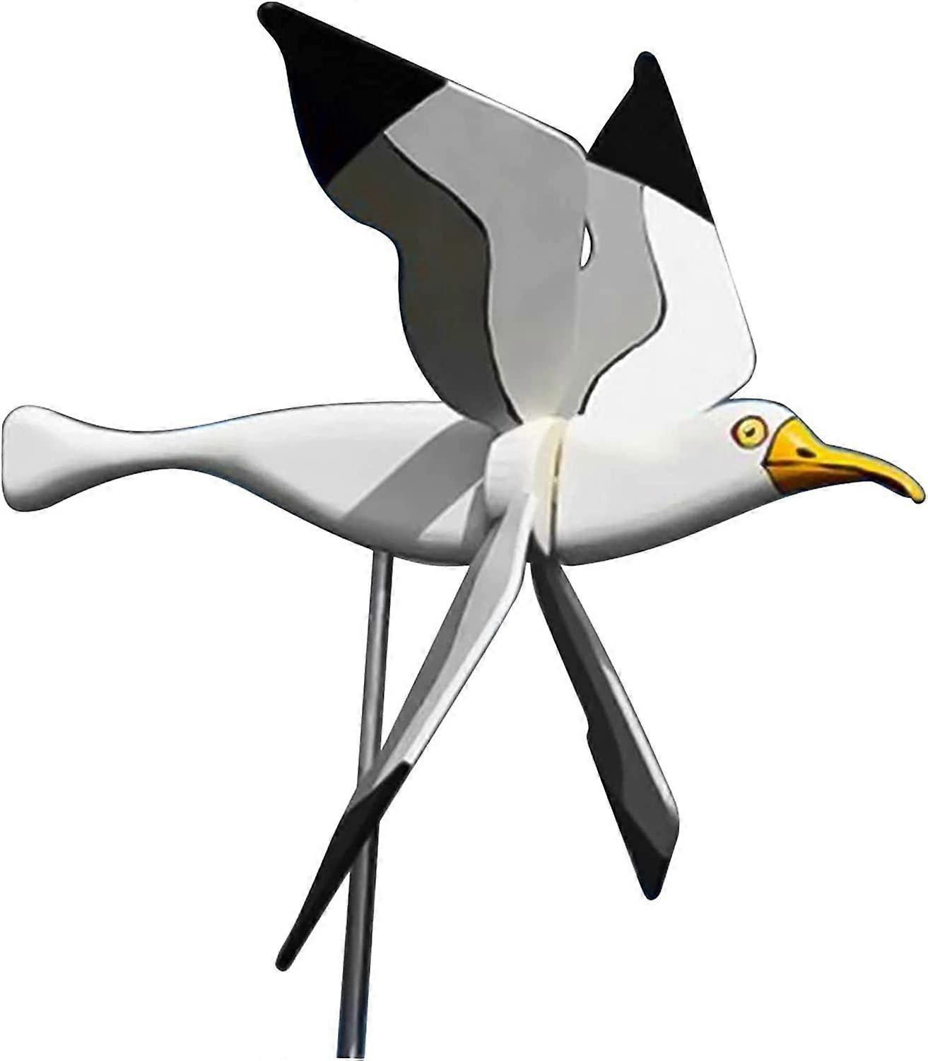 Resin Garden Windmill, White Seagull with Spinning Wings Animal Weathervane, 3D Wind Spinner Decoration for Lawn