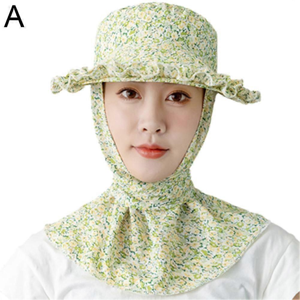Printing Tea Picking Hat UV Protection Face Mask Sunshade Shawl Cap Wide Brim
