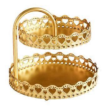 Double Layer Pastry Tray Decorative Copper Gold Biscuits Dessert Display Plate for Wedding Loving Heart
