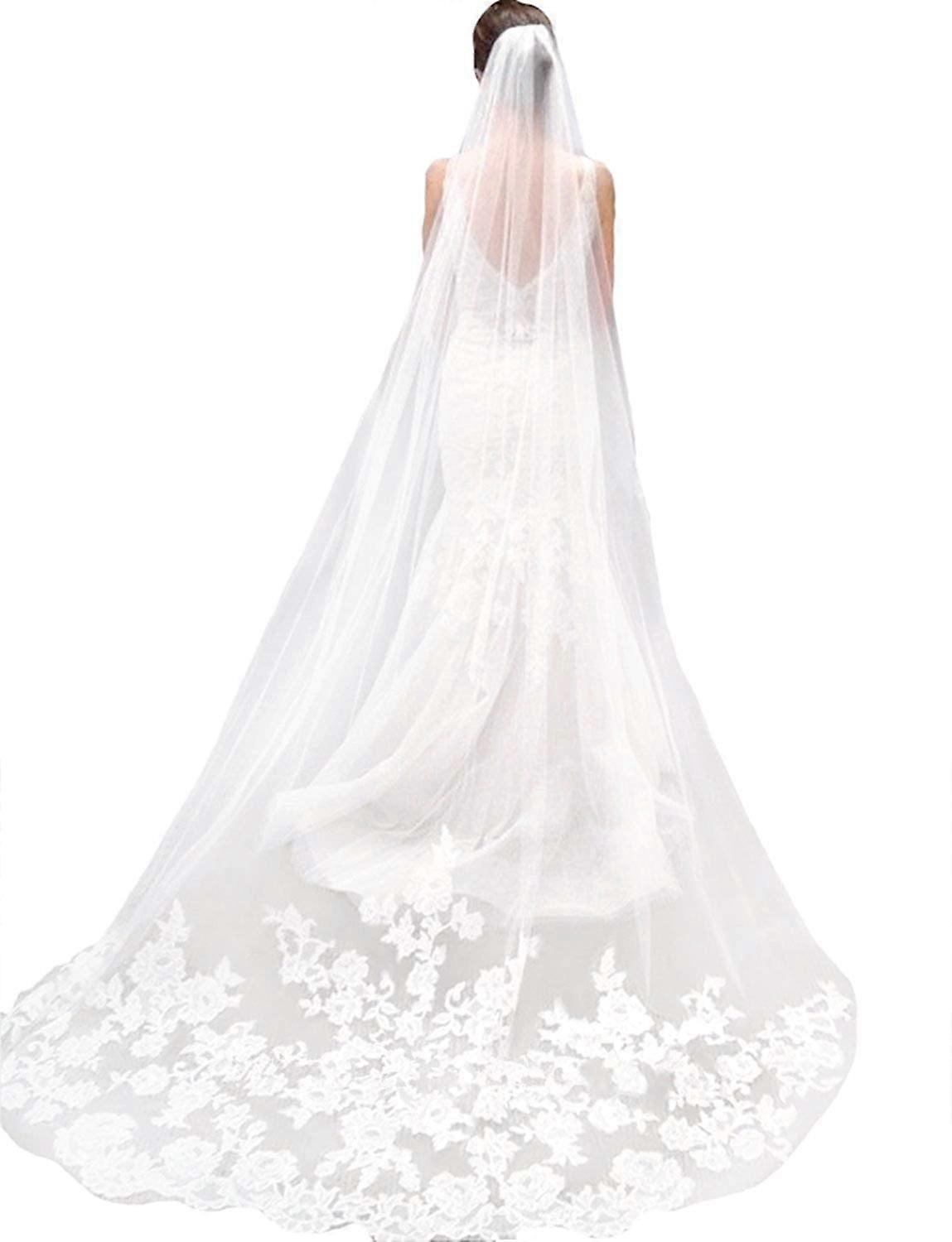 Single Layer Wedding Veil Bridal Veil Lace Embroidery Bride Supplies 3m (Off White)
