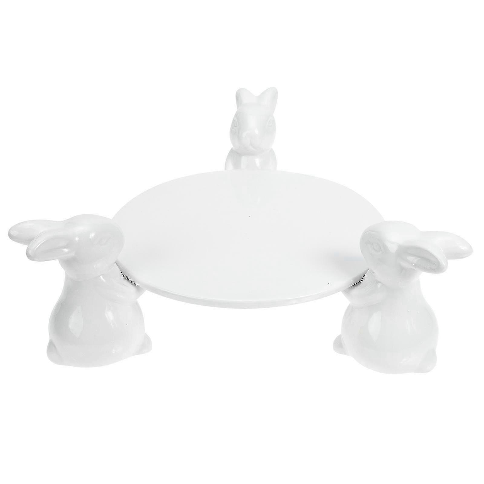 Raised Desserts Plate Food Serving Tray Ceramic Refreshment Holder (white)