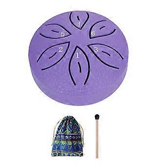 Steel Tongue Drum Rain Drum for Outside, 6 Notes 3 Inches Chakra Tank Drum Steel Percussion Padded Mallets Purple