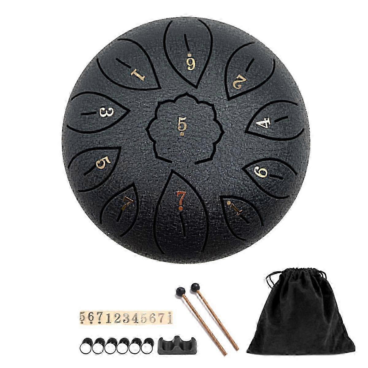 Rain Drum For Outside, Steel Tongue Drum 11 Notes 6 Inches Chakra Tank Drum Steel Percussion Padded Mallets Black