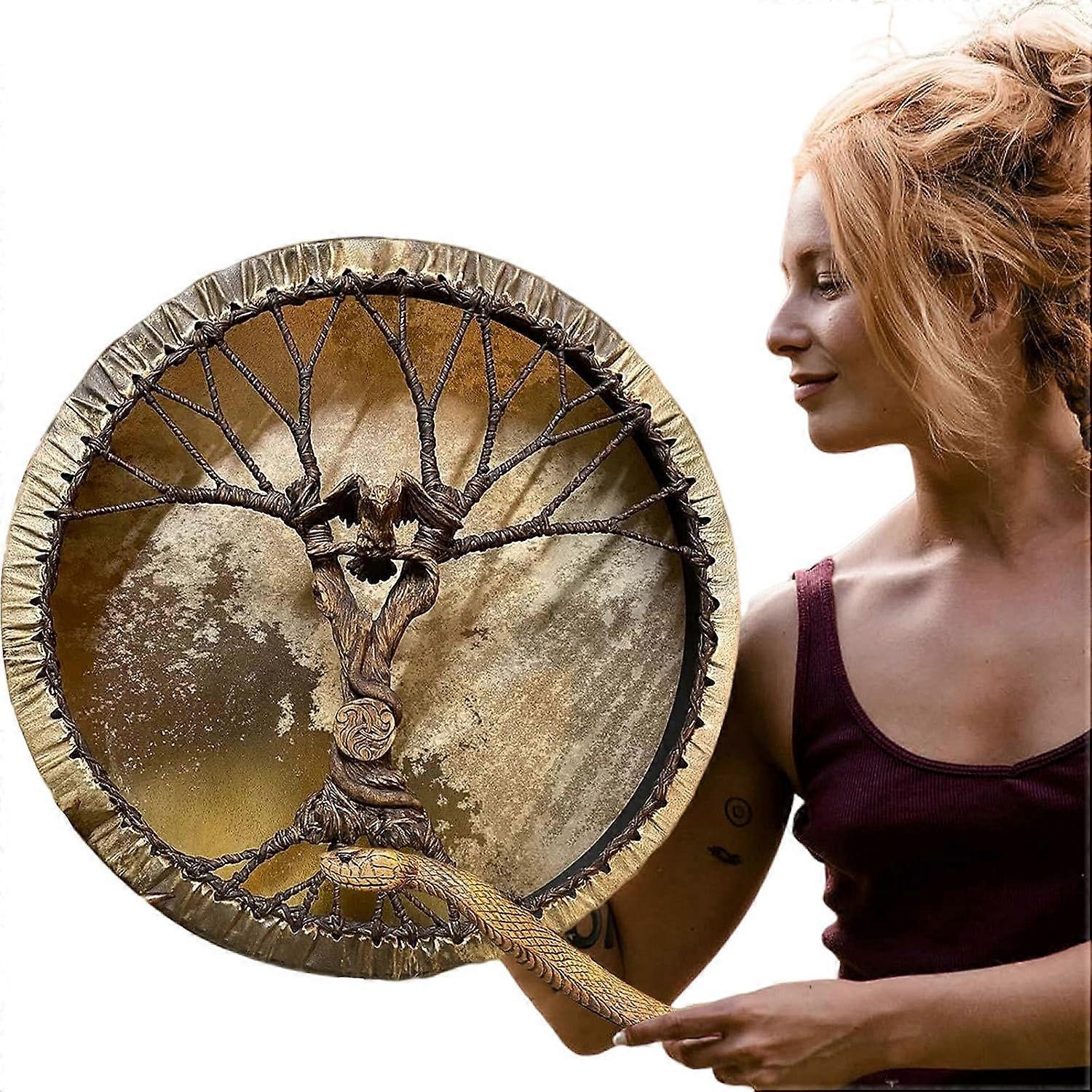 Shaman Drum - Shaman Drum Tree-of-Life Siberian Drum - Tree-of-Life Decoration Design - Wood Frame Drum for Spiritual Music, Balance, Reflection and M