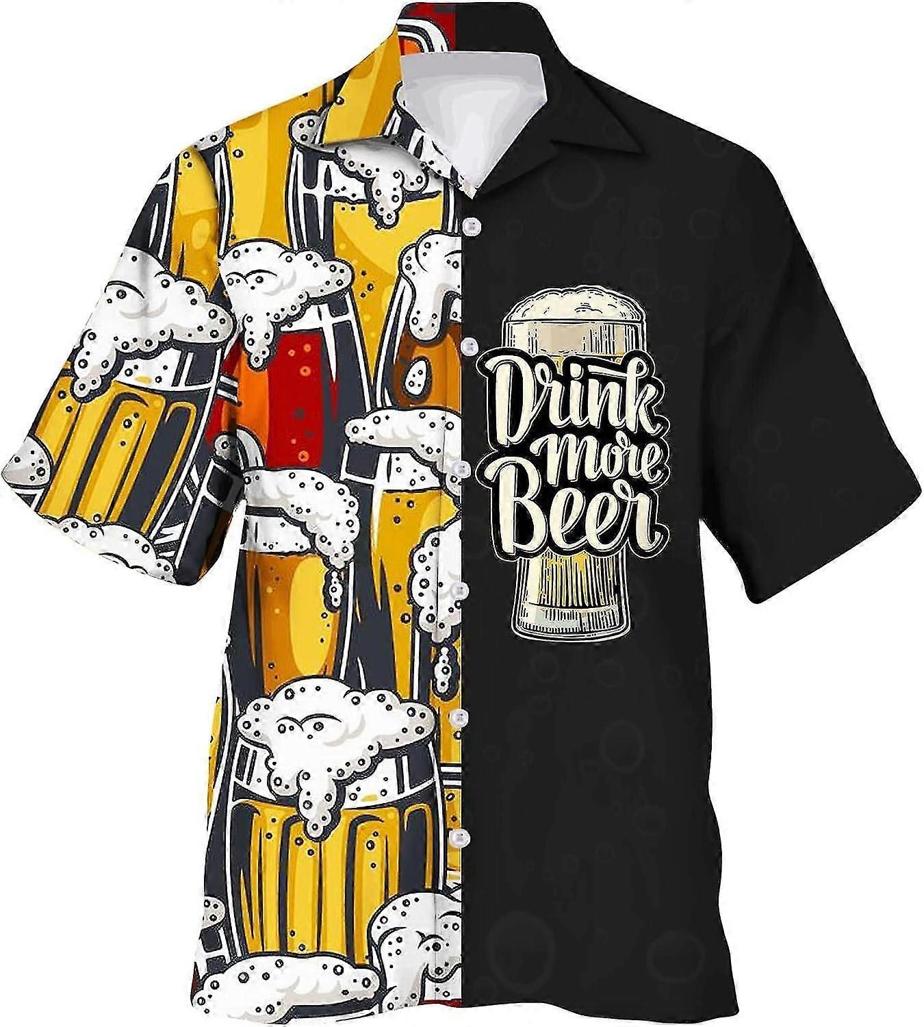 way Oktoberfest 2023 Male Oktoberfest Shirt Short Sleeve Alphabet Wine Bottle Beer Print Button Plus Size Men's Jumper with Buttons Shirt Printed Clot