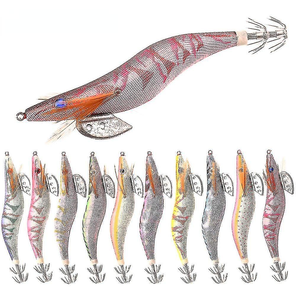 Fishing Baits Lures No.3.5 Glow-in-the-dark Wooden Shrimp Squid Lure Octopus Bait Roadrunner Bionic Bait Set