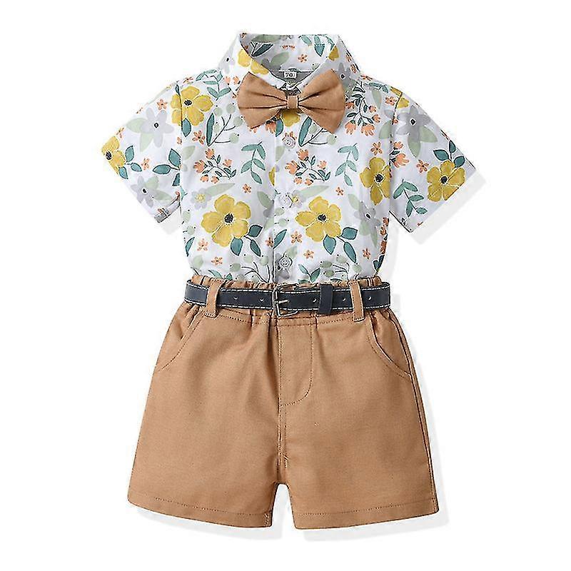 Toddler Baby Boys Summer Print Shirt Outfits Clothes Short Sleeve Button Down Tops + Shorts Set