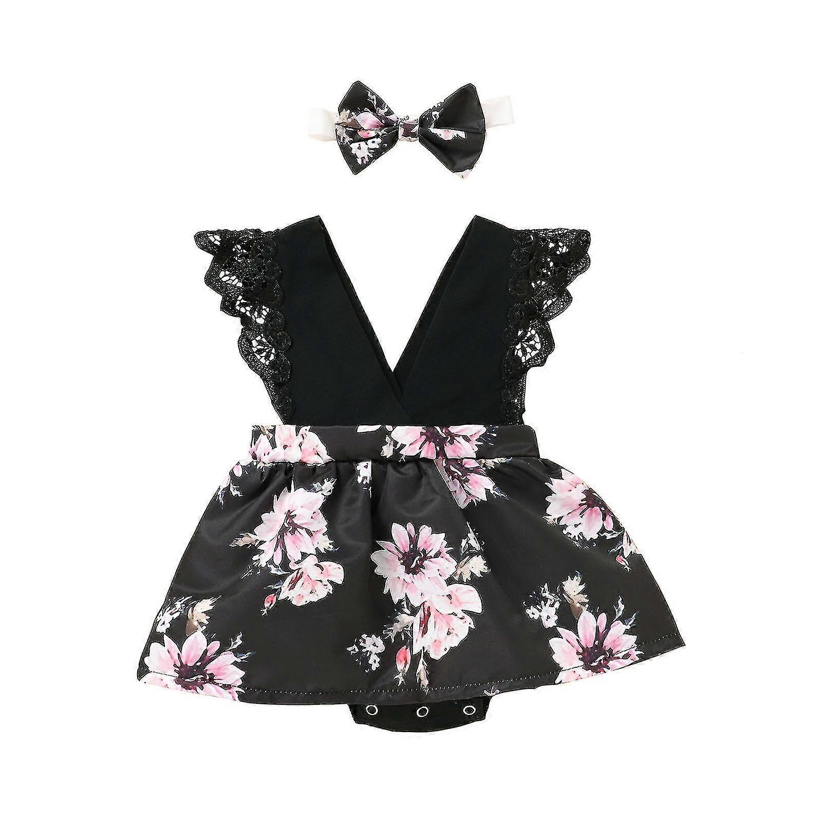 Toddler Baby Girls Outfits V-neck Clothes Cute Flowers Romper Short Skirt Suit