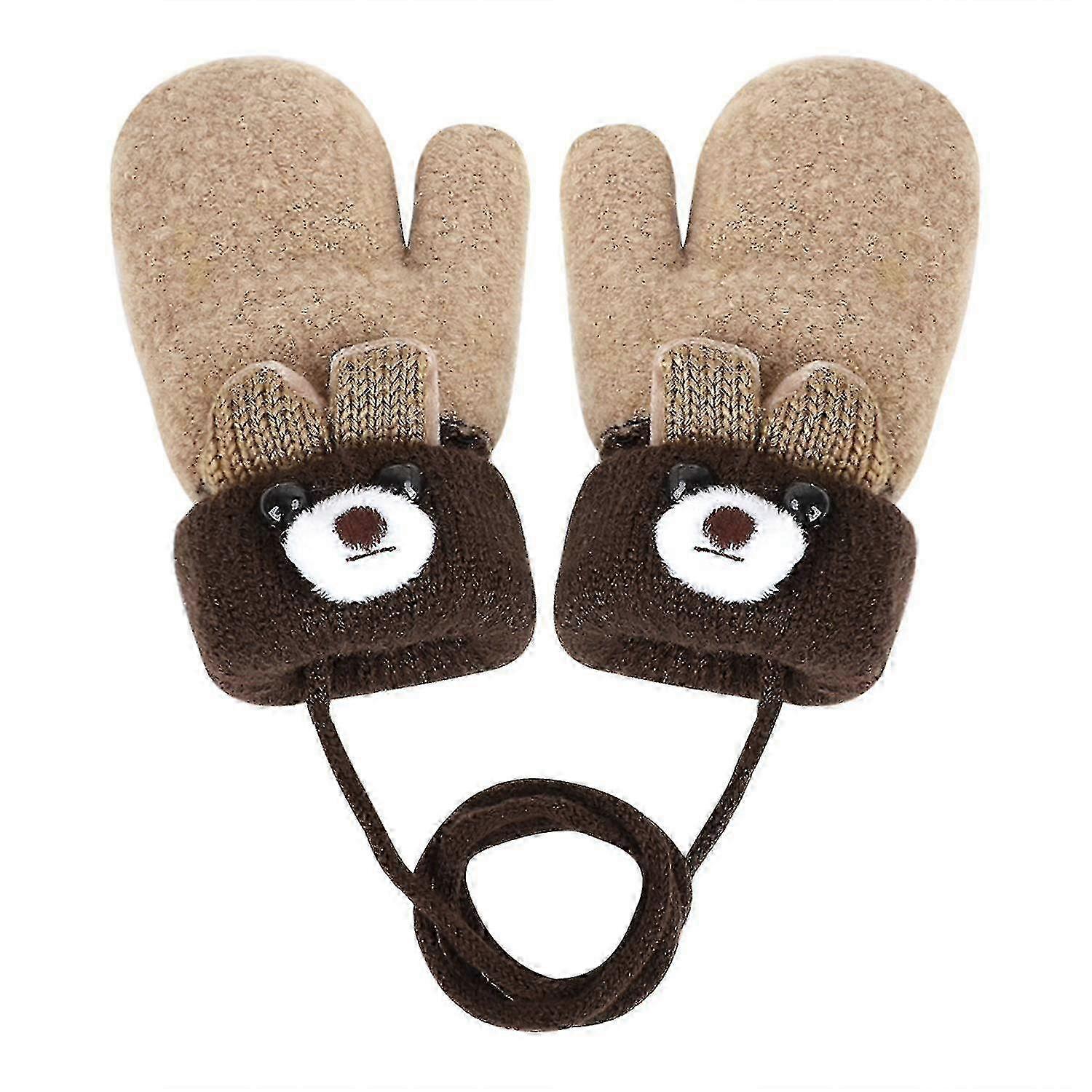 Toddler Warm Winter Full Finger Gloves Infant Thick Fleece Lined Ski Gloves With Cords