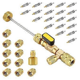 Valve Core Remover Installer Tool Kit With Dual Size 1/4 & 5/16 Port For With R22 R12 R407 R410 R404 R32 R600-Good