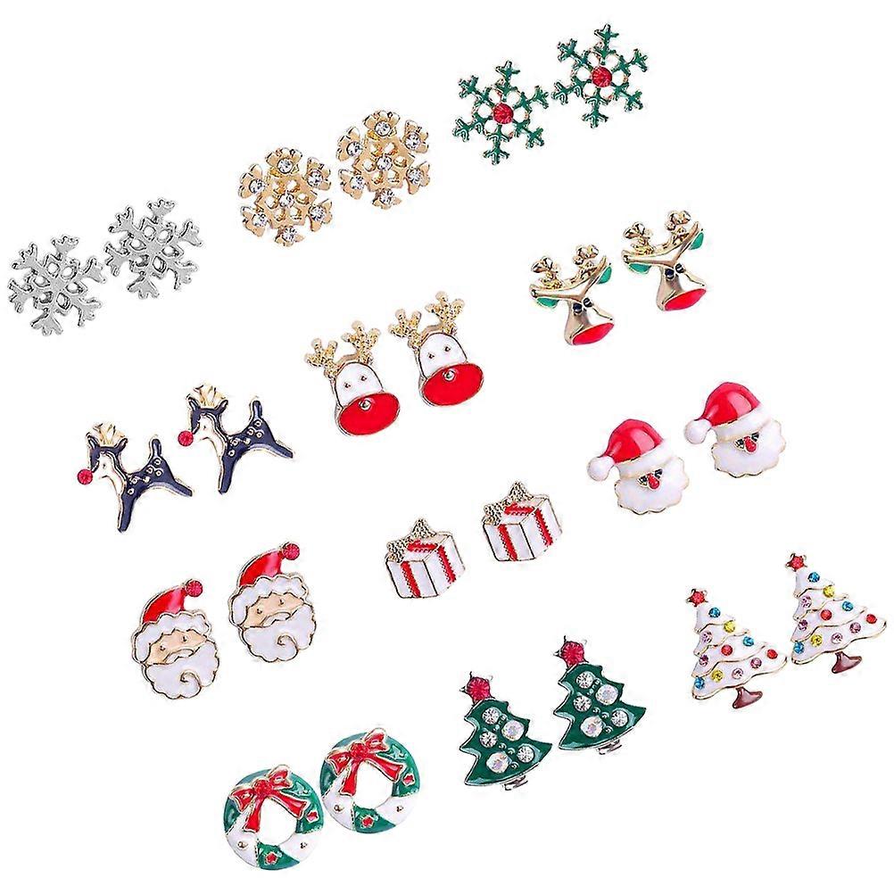 Seasonal Earrings Set Christmas present Lightweight Comfort 2x1.5cm Alloy Adorable Style 12Pairs