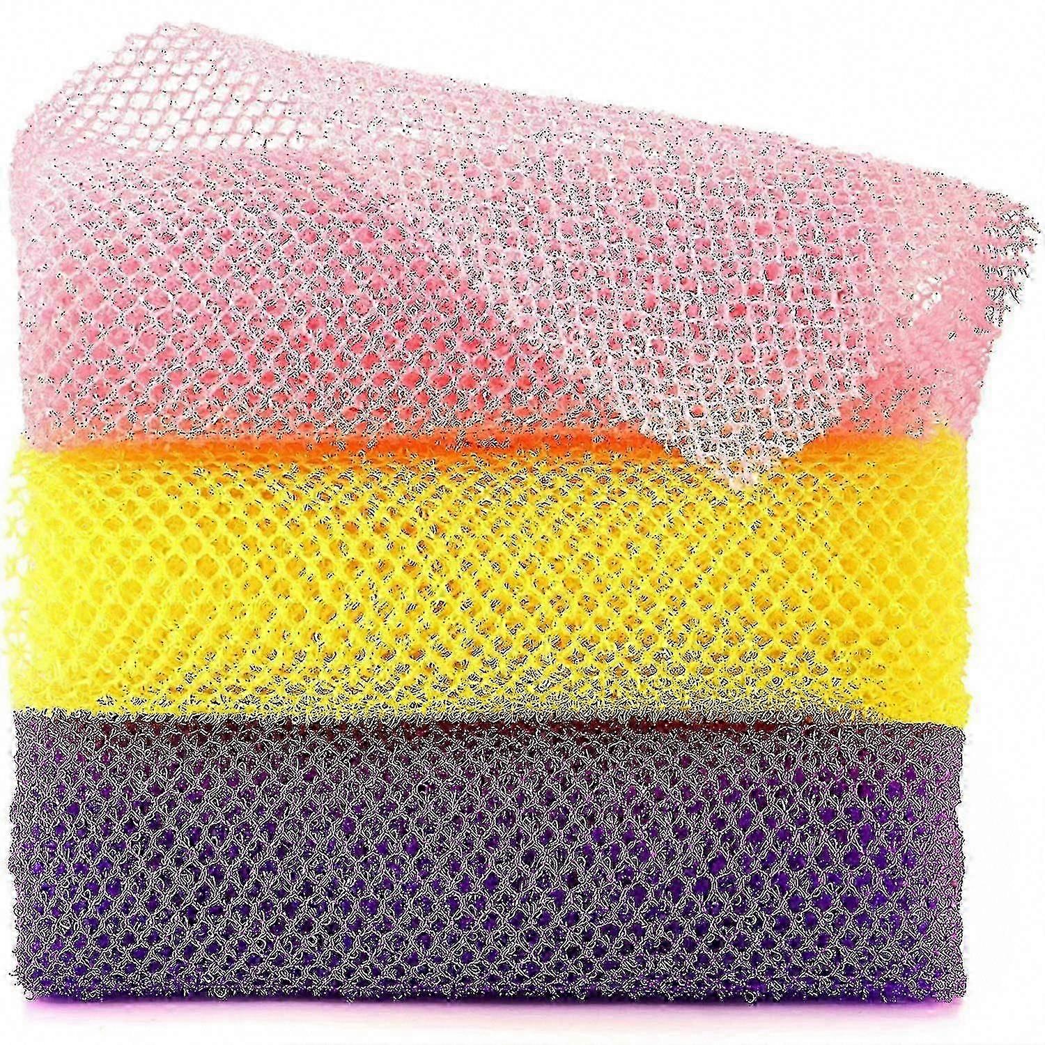 3-Piece African Exfoliating Bath Sponge Set for Shower & Body Scrub - Pink, Yellow, Purple - Great for Daily Use