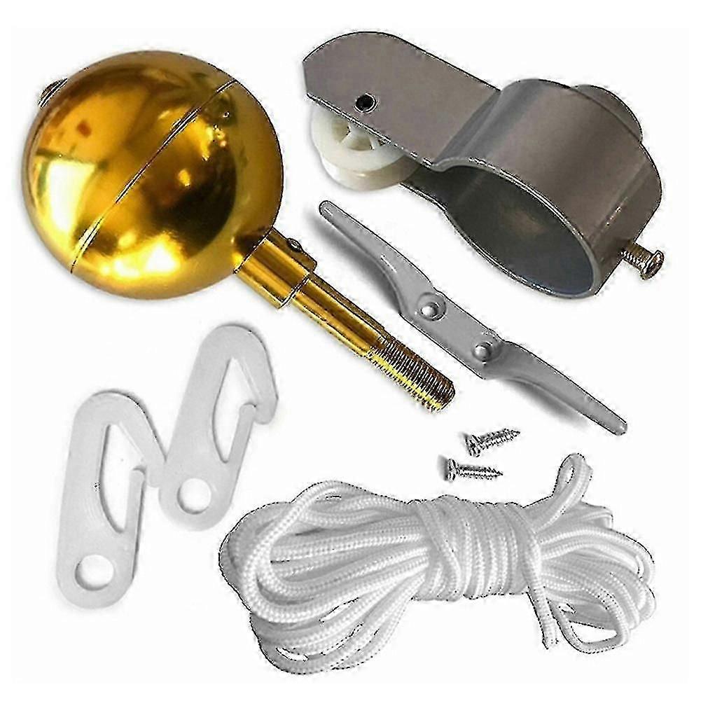 Flag Pole Parts Repair Kit 2'dia Truck Pulley Gold Ball Cleat Clip Halyard Rope