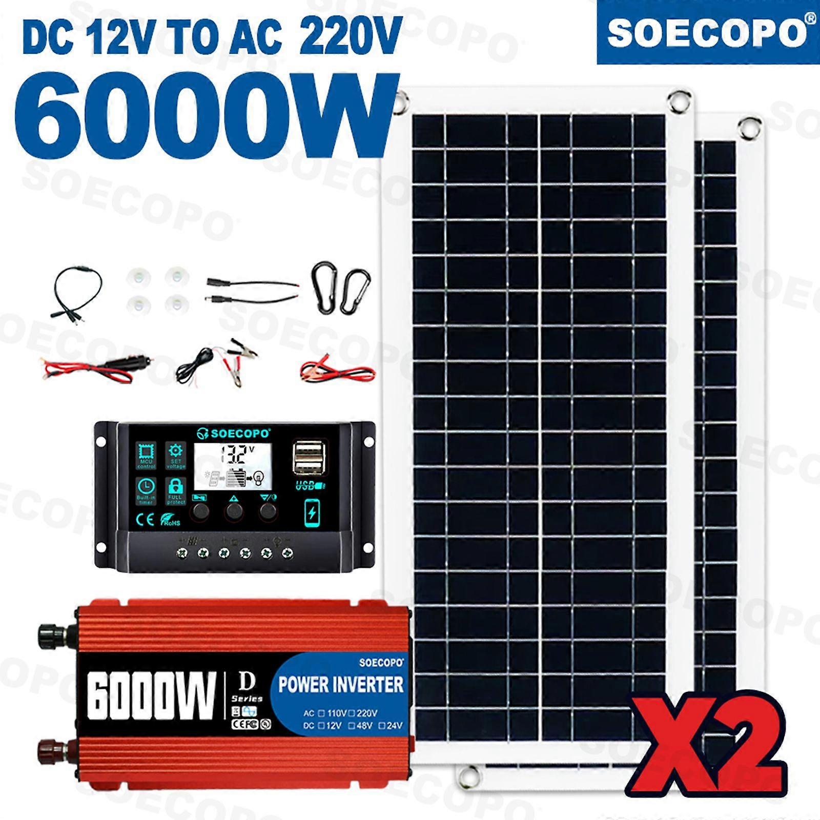 Ultimate 6000W Solar Power Bundle: Inverter DC 12V - AC 110V/220V+ 2pcs Solar Panels+ Charge Controller | Ready for Off-Grid