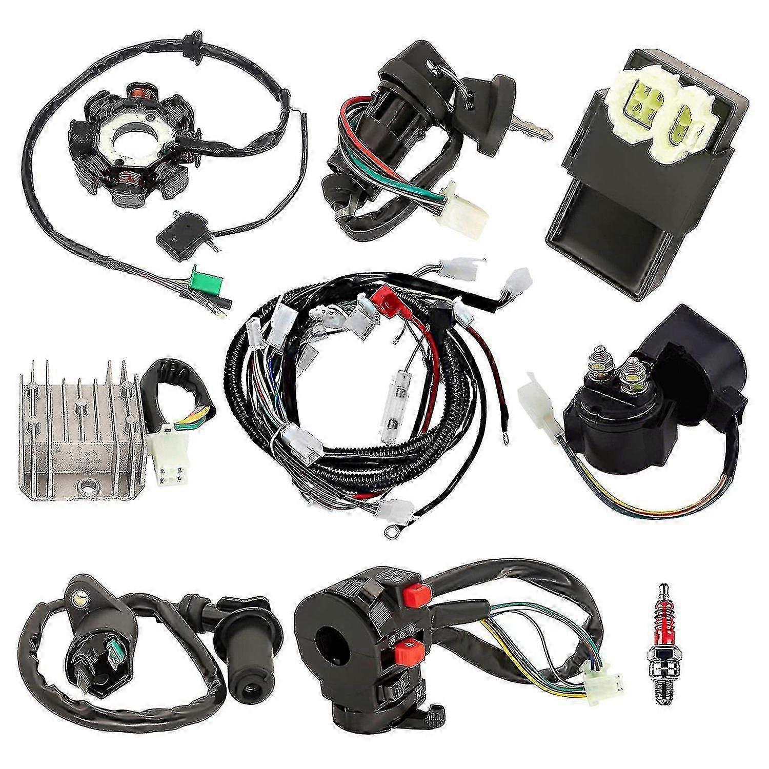 Atv Wiring Harness Kit, With Stator Regulator Ignition Switch Solenoid Relay For Gy6 125cc 150cc At