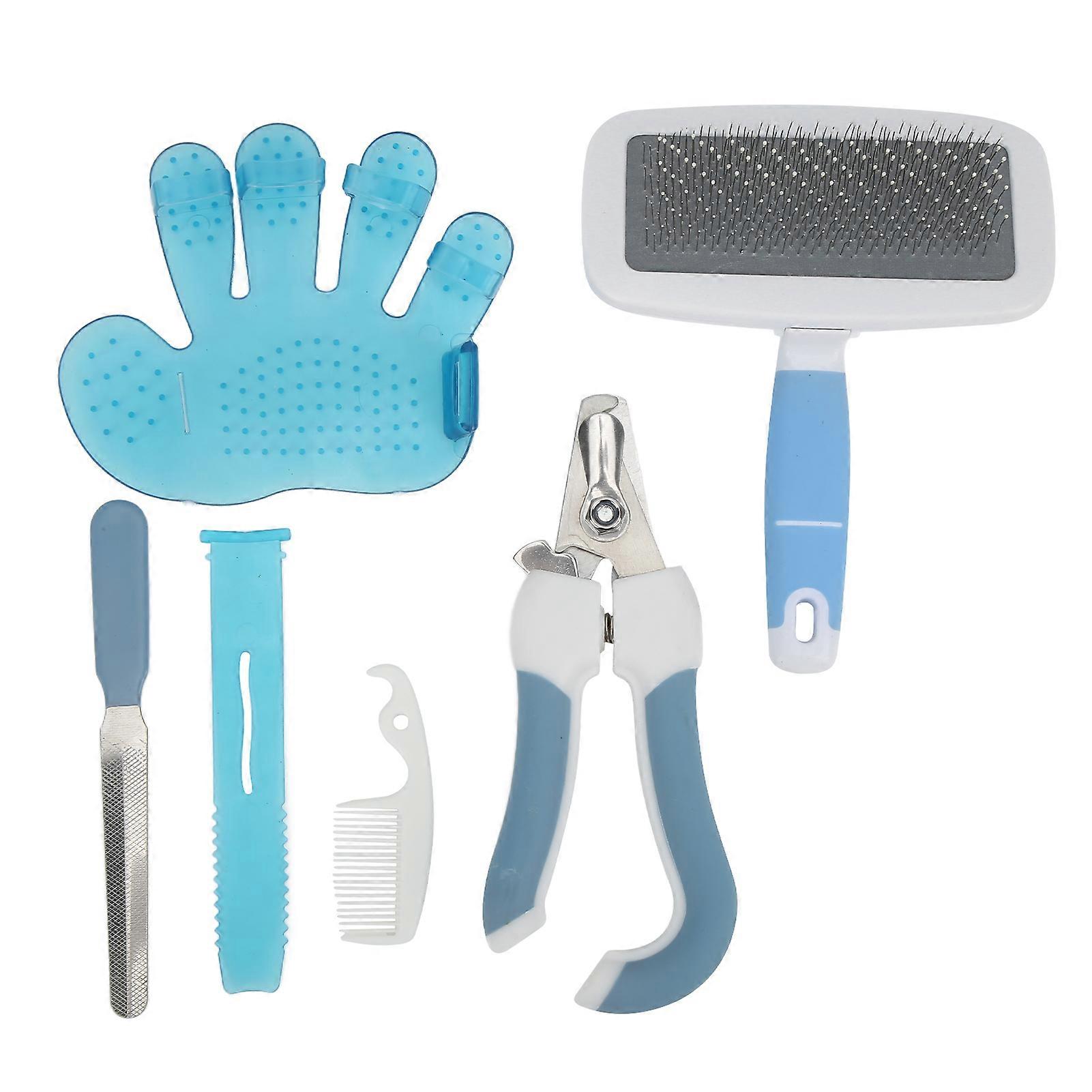 Pet Trimming Kit Dog Comb Cat Nail Scissors Pet Cleaning Supplies Pet Grooming Hairdressing Trim KitsL Blue