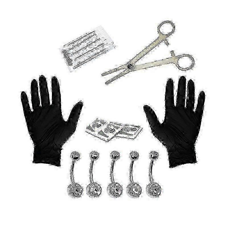 Piercing Kit-15pcs Professional Body Piercing Kit Surgical Belly Button Ring Set Steel 14g hwy
