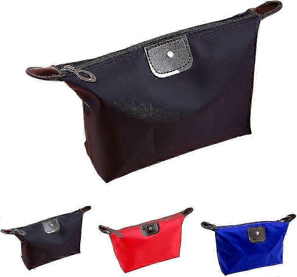 3 Piece Small Travel Bag Set - Waterproof Storage Bags for Makeup, Toiletries, Accessories, Brushes - Royal Blue, Black and Red