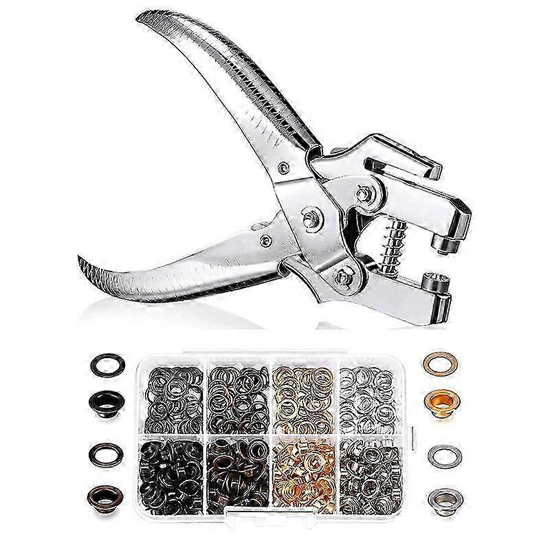 Package content: 1 piece grommet plier and 200 pieces of grommets in 4 colors: silver, gold, green, and black. Durable material: The hole punch plier is made of metal, sturdy and not easily deformed, designed for long-term use. Suitable size: Each grommet has an inner diameter of approximately 3/16 inches, outer diameter of 0.33 inches, and thickness of about 0.14 inches, suitable for various applications. Comfortable grip: The grommet hand press plier features a curved handle design for easy and safe handling. Wide application: Ideal for use on various materials such as fabric, leather, belts, acrylic, canvas, and paper. Can be used to punch holes in books, cards, clothing, bags, shoes, and belts. Practical gift: A great choice for friends, family, colleagues, or relatives who enjoy crafting. Perfect household accessory: A useful tool for everyday tasks; keep one at home or in the office for convenience. Color: As shown. Material: Metal. Size: 24.5 x 12 x 5 cm. Package contents: 1 x Hole punch plier, 200 x Grommets. Note: Small parts included. Keep away from children. Pay attention to the correct alignment of the grommet and plier to avoid damage. The package includes only the items listed. Due to lighting and display differences, the actual color may vary slightly. Measurement allows for a 1-3 cm deviation.