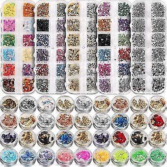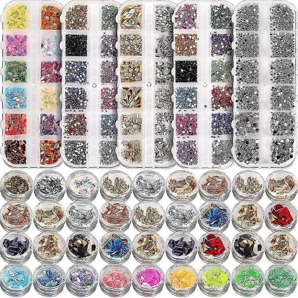 Nail Decorations Kit, Nails Rhinestones And Foils Flakes, Professional Nail