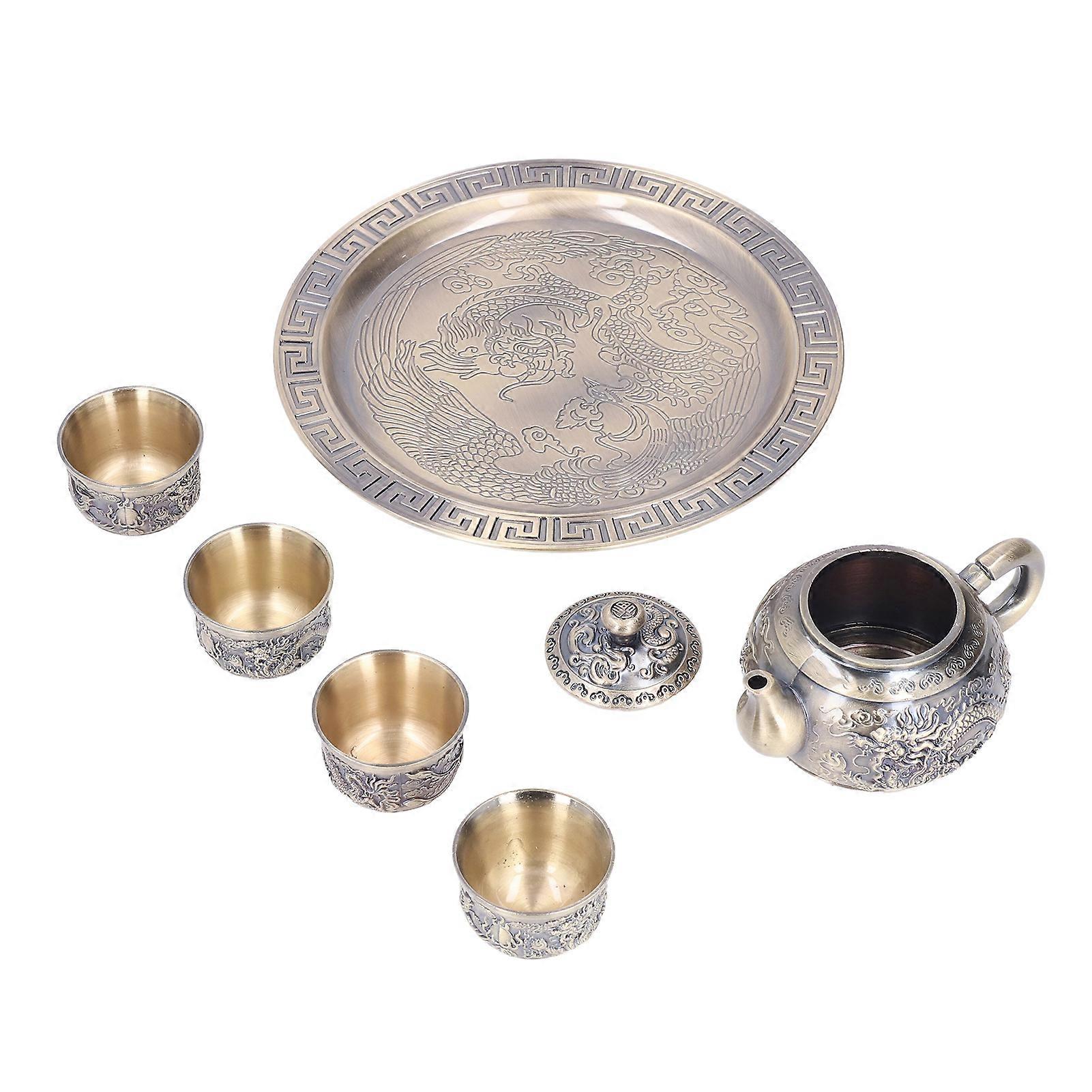 Tea Pot Vintage Exquisite Metal Luxurious Relief Pattern Moroccan Tea Set with Cups Plate for Table Decoration Gift