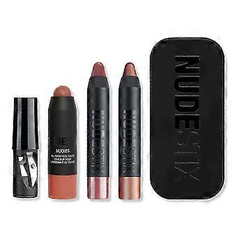 The Sunkissed Nudes 3 Pc Mini Set is a limited edition, exclusive three-piece kit featuring the best-selling, iconic Nudies Matte Blush for eyes, cheeks, and lips, Magnetic Luminous Eye Color in a bronze tone, and the glossy Gel Color Lip+Cheek Balm to finish off the look. NUDESTIX has curated a collection of shades that will keep your skin looking effortlessly bronzed, luminous, and fresh-faced all on-the-go.