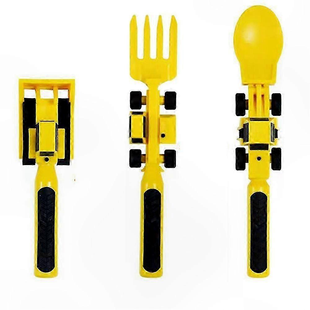 Kids Dining Set with Bulldozer and Excavator Designs - Shovel Forks and Spoons for Children