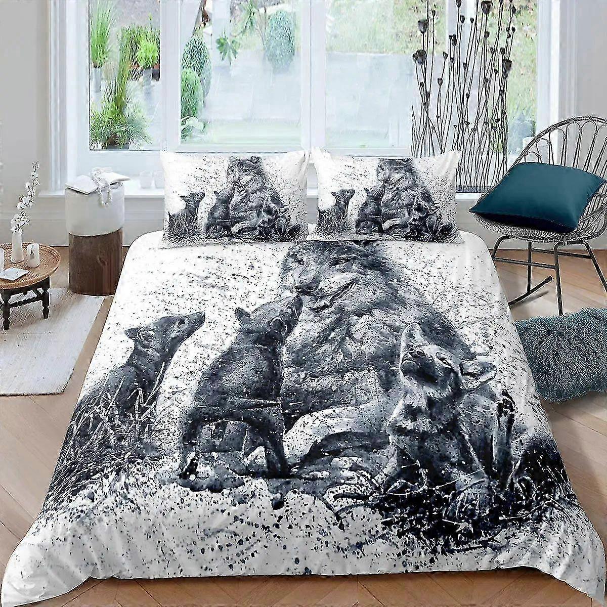 Wild Snow Wolf Animal Bedding Set, Duvet Cover Bed Set with Quilt Cover and Pillowcase, King Queen Twin Size Suitable for All Ages 3-Piece B