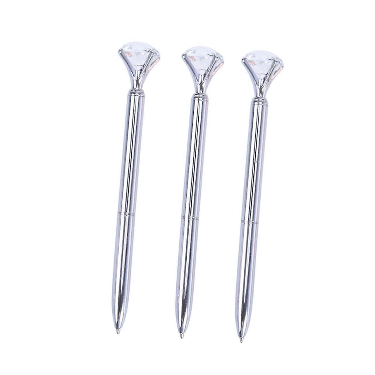 Ballpoint Pen Set Metal and Crystals with Large Diamond Silver for Office 1 Piece