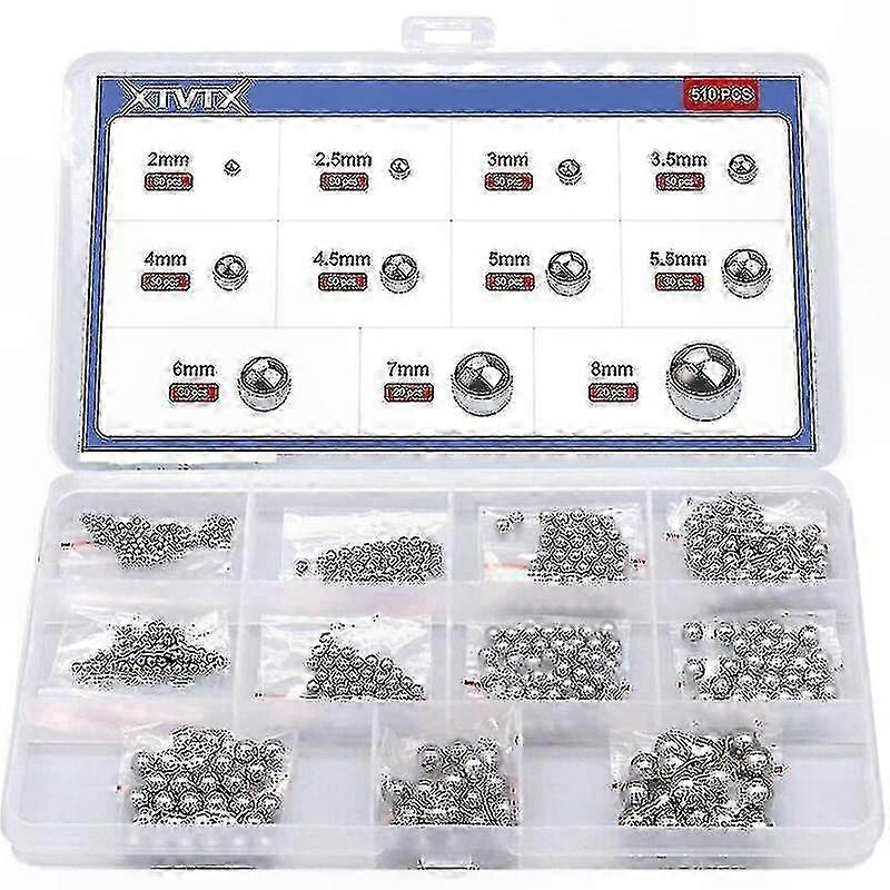 Precision Steel Bearing Balls Kit, 510 Pieces, 2mm-8mm, for Bicycle and General Use