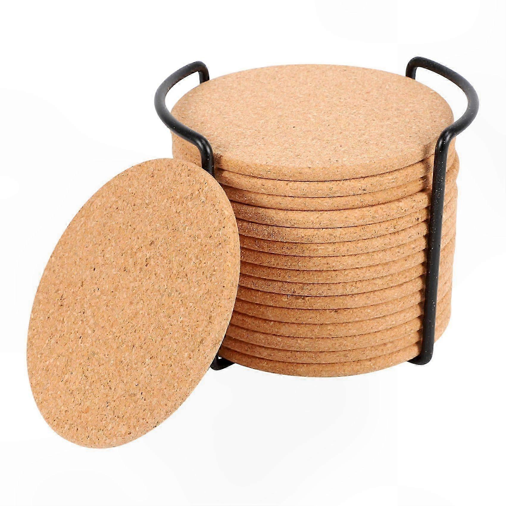 Round Cork Coasters Set of 16 with Metal Storage Caddy, 1/5 Inch Thick and Absorbent for Everyday Use