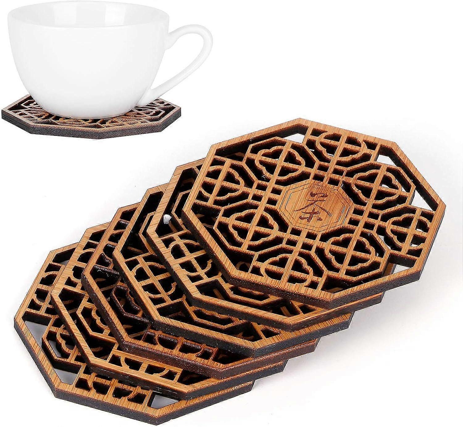 6-Piece Bamboo Coaster Set, Anti-Scald Tea Mat for Tea Ceremony, Type 1