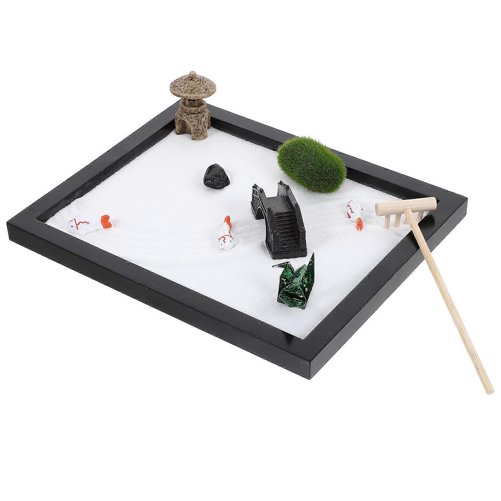 Mini Sand Play Kit For Bookshelf Decor Stress Relief Mindfulness Meditation Wooden Material 1Pcs