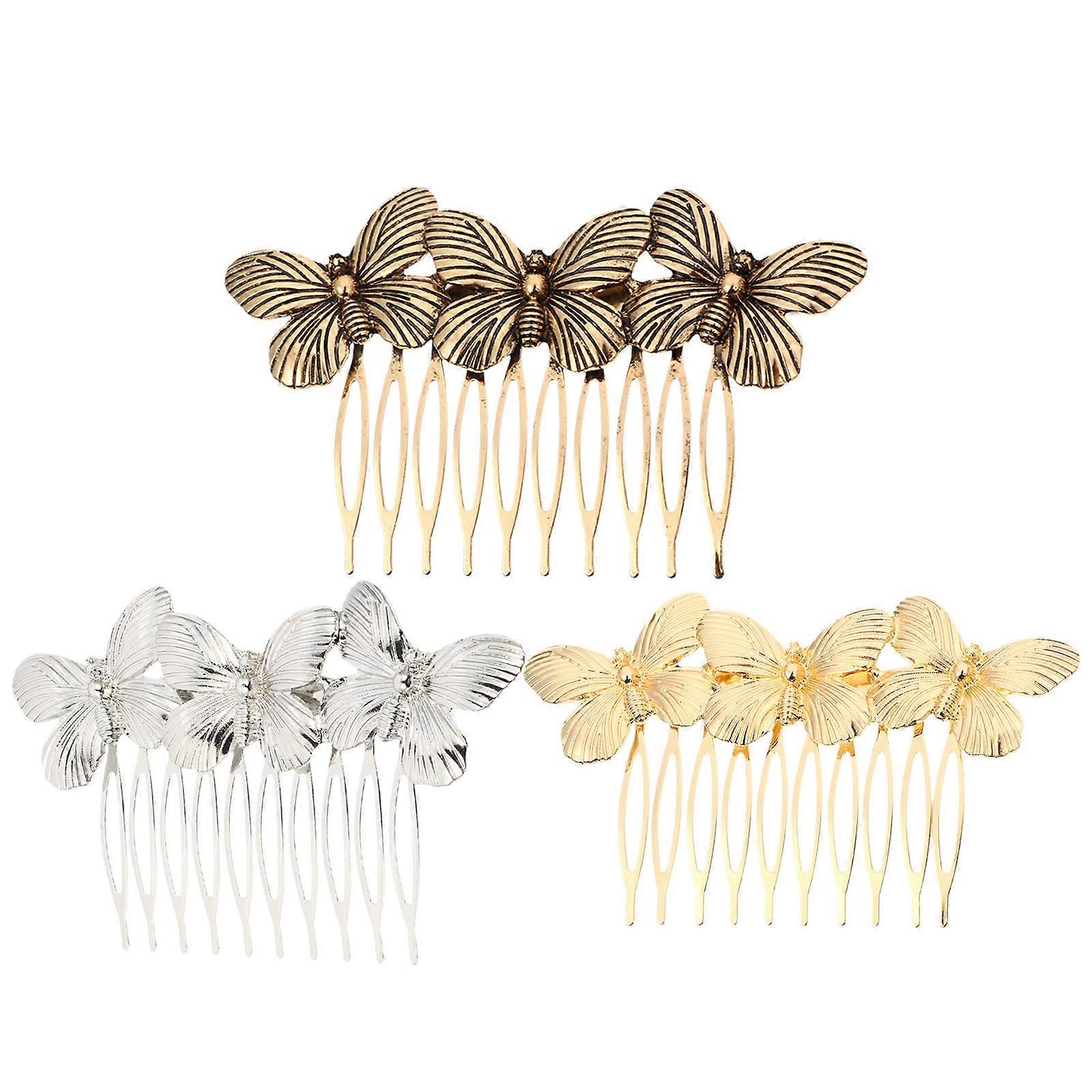 Vintage Butterfly Hair Comb Set Elegant Bridal Side Headpiece for Women Retro Alloy Design for Weddings & Special Occasions Gold, Silver &