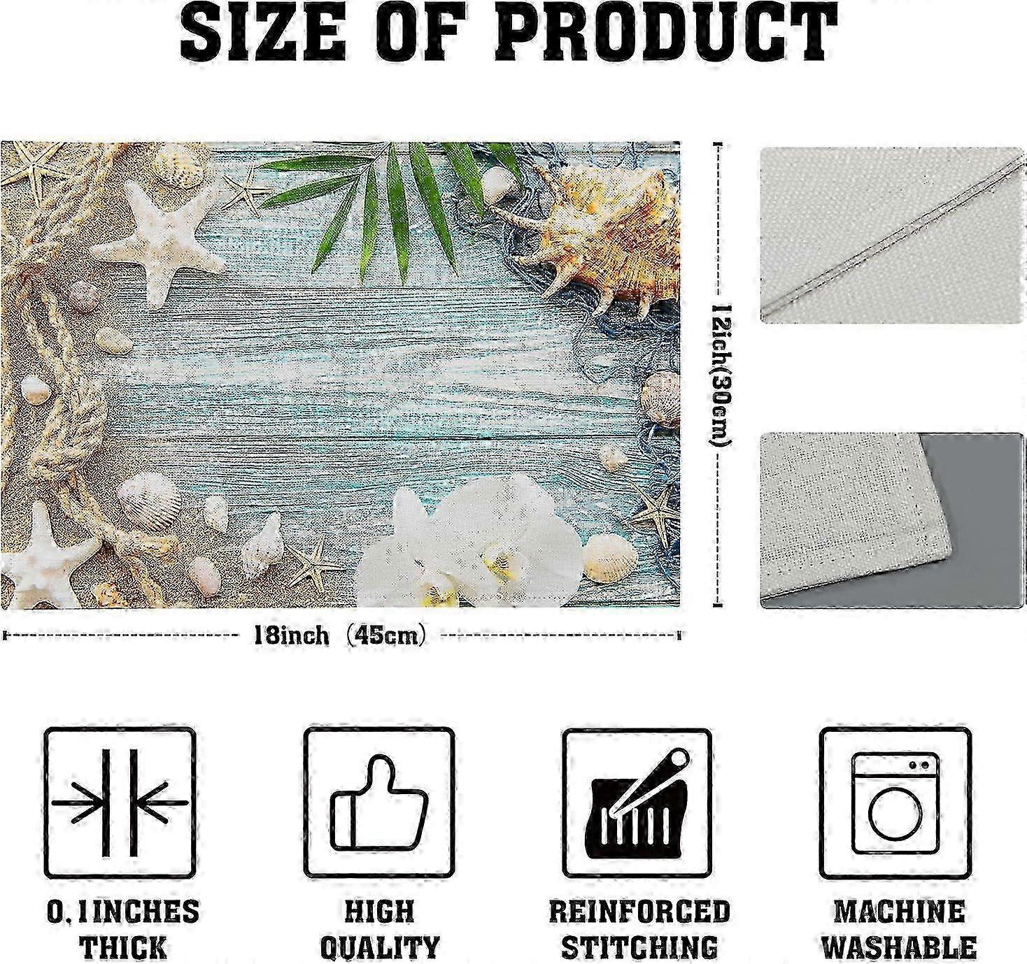 Beach placemats set of 4 nautical starfish washable 12x18 inch
