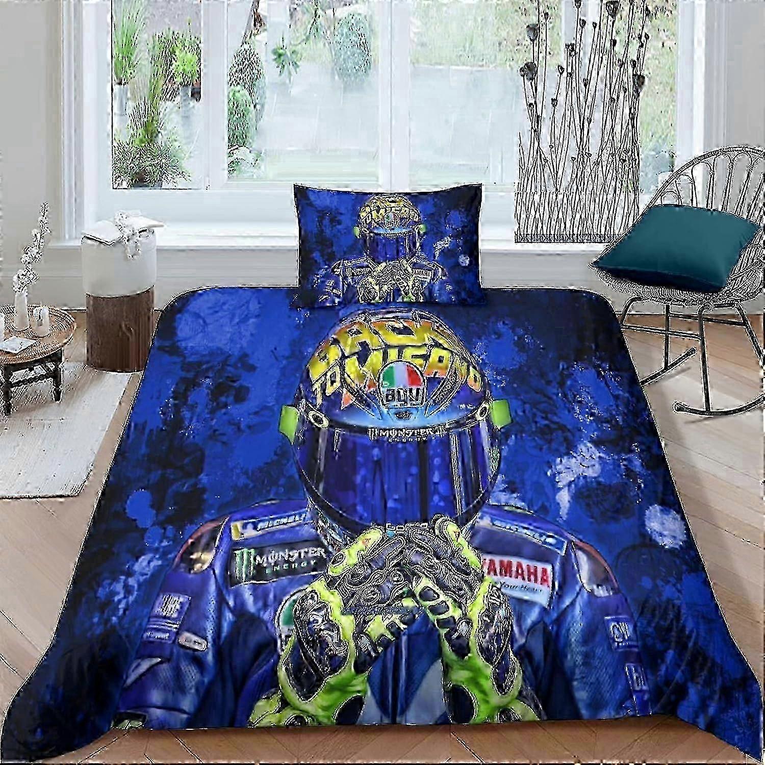 Motogp Motorcycle Bedding Set, with Duvet Cover and Pillowcase, Pieces, Soft and Breathable Microfibre, with Zip, Motocross, Single 135*200 cm Cs