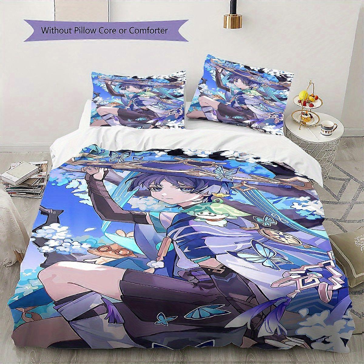 TE352 Scaramouche Genshin-Inspired Bedding Set - Soft Polyester Quilt Cover & Pillowcase, Zipper Closure, Vibrant Anime Character Design