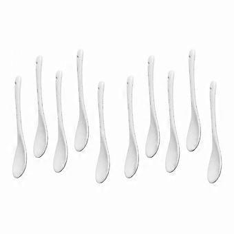 White Porcelain Spoon Set for Coffee and Dessert, 10-Piece Ceramic Egg Spoon Collection