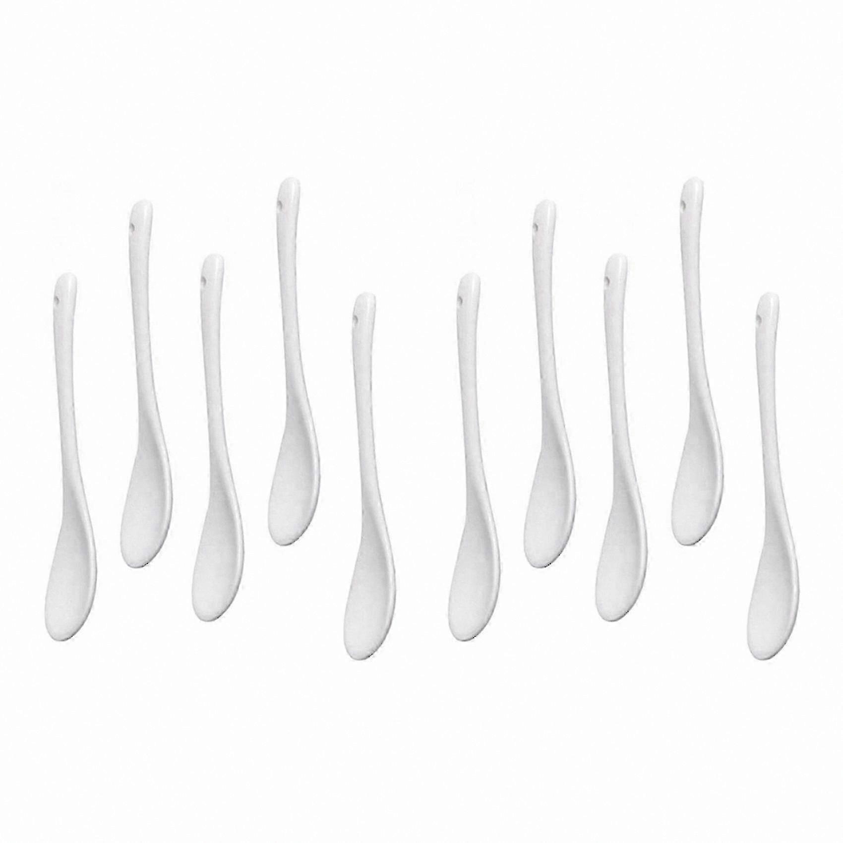 White Porcelain Spoon Set for Coffee and Dessert, 10-Piece Ceramic Egg Spoon Collection