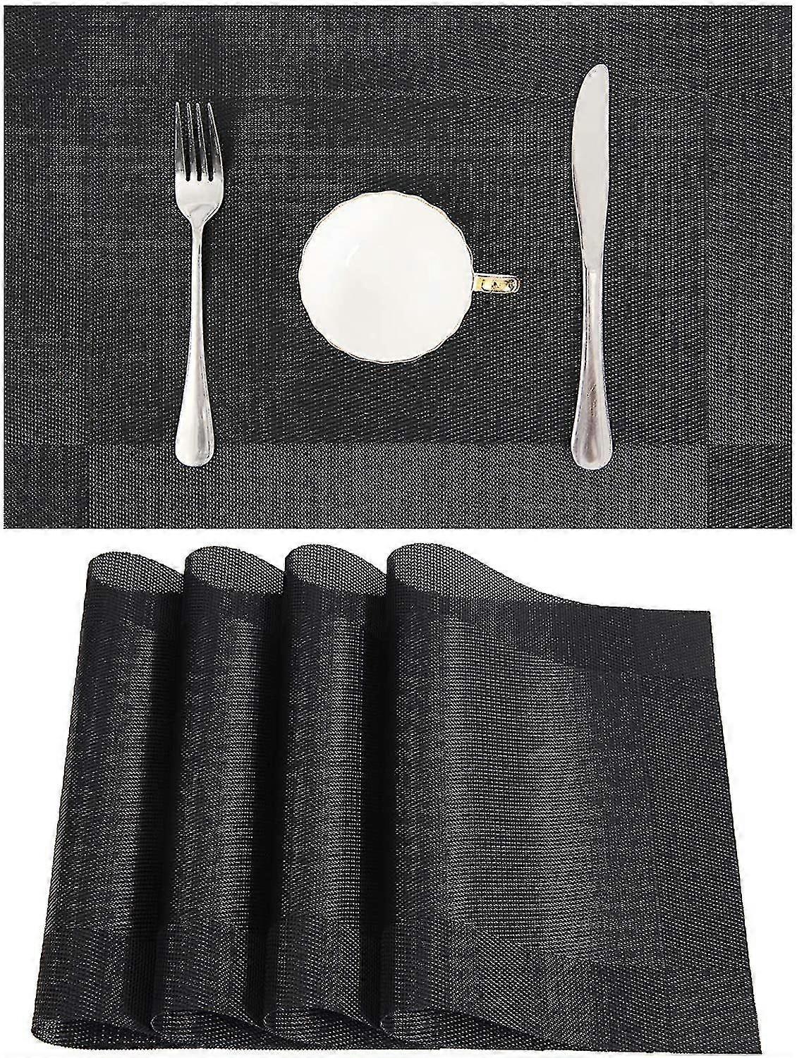 Set Of 10 Washable Non-slip Pvc Braided Placemats For Dining Room Placemat Black 45cm * 30cm