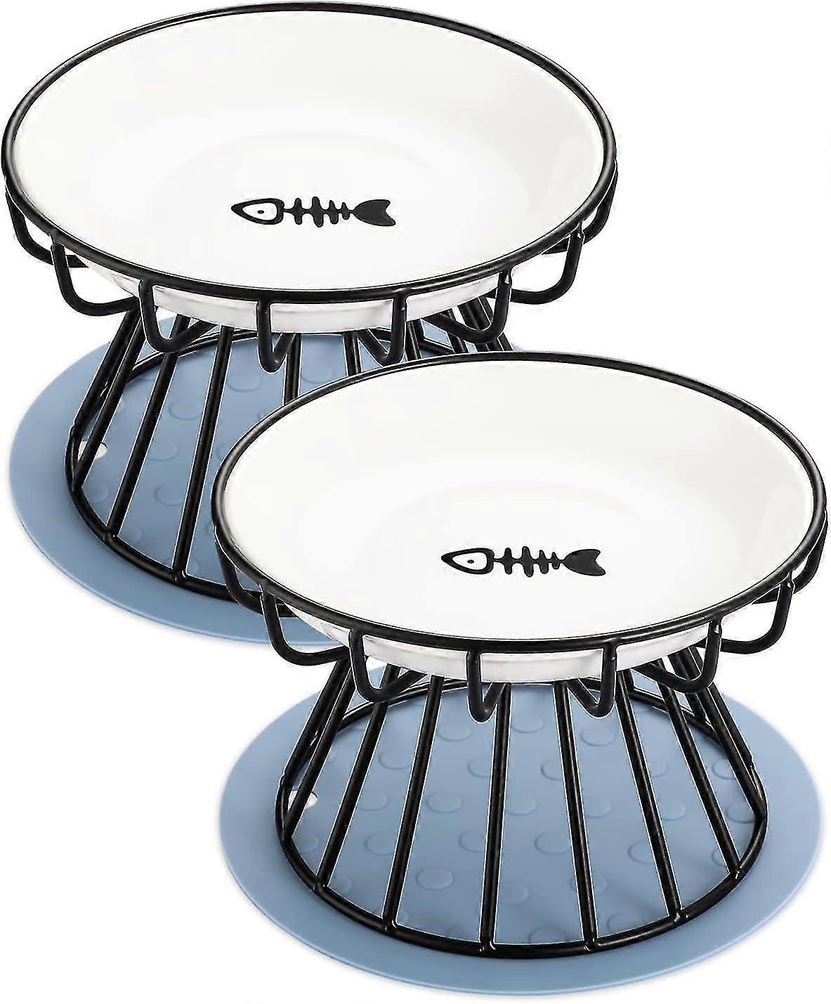 Set of 2 Ceramic Elevated Cat Food Bowls - Anti-Vomiting Design, Non-Slip , Spine Protection, Comfortable Feeding, Dishwasher Safe